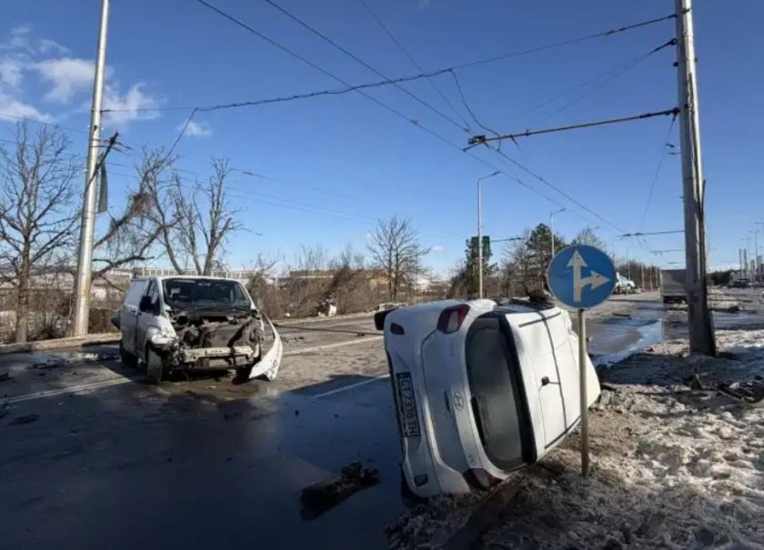Колата се преобърнала настрани и ударила камионче „Ивеко“, също със софийски номера, което се движело пред нея.
