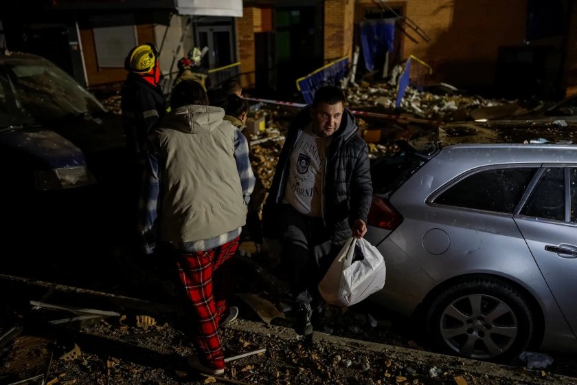 Кличко каза, че падащи отломки са поразили пететажна жилищна сграда в Днепровски район, на източната страна на река Днепър.