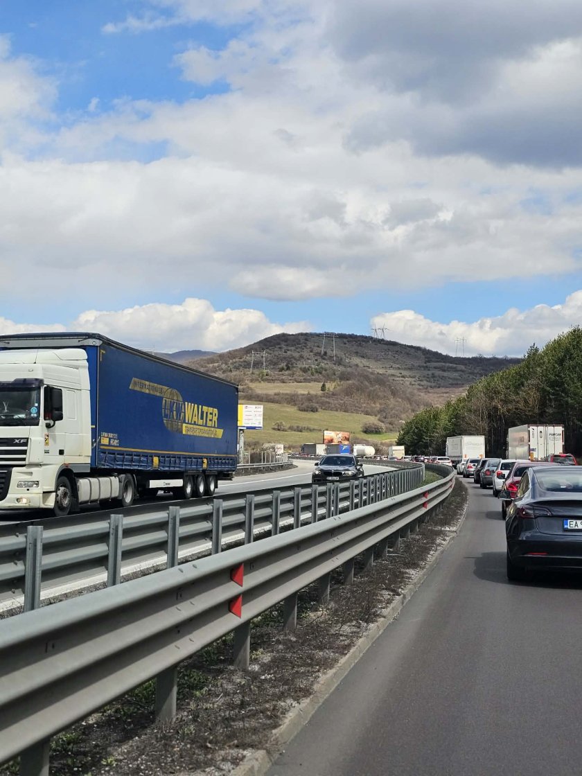 Катастрофа затрудни движението по автомагистралата
