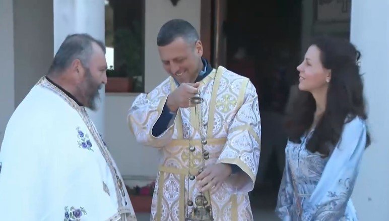 На снимката: Кметът Ивайло Симеонов (по средата), заедно със съпругата си и местния свещеник