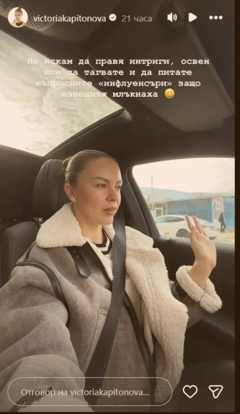 Виктория Капитонова, победителката от първия сезон на „Ергенът“, отново разбуни духовете в мрежата със сензационно твърдение за инфлуенсърските среди. Часове преди големия протест снощи, тя пусна серия от смели сторита, в които твърди, че някои популярни лица в интернет пространството са получили между 5 и 10 хиляди лева, за да си държат профилите в пълно мълчание относно демонстрациите срещу правителството.