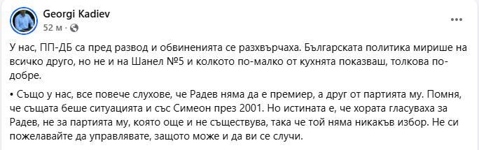 Той обаче не е единственият, чул тази клюка - тя е достигнала и до Георги Кадиев например. Ето как я коментира той: