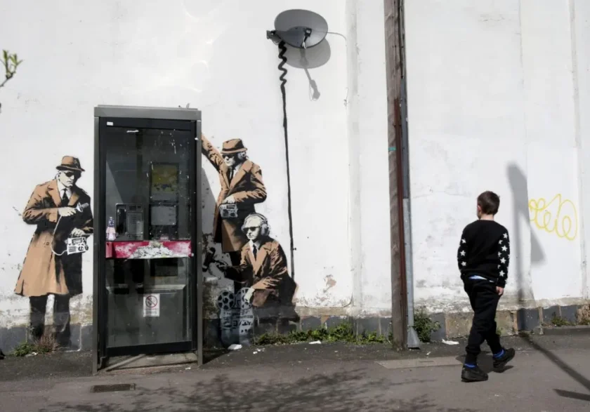 Момче минава покрай пореден нов графит, дело на Банкси