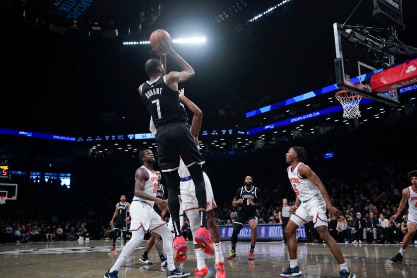 Кевин Дюрант блесна с рекордните за сезона 53 точки и 56.3% успеваемост от стрелбата от зоната за 3 точки за успеха на Бруклин над Ню Йорк със 110:107. Дюрант добави и 9 асистенции. Той подобри рекорда на Джон Уилямсън от 1978 година за най-много точки срещу Ню Йорк Никс.