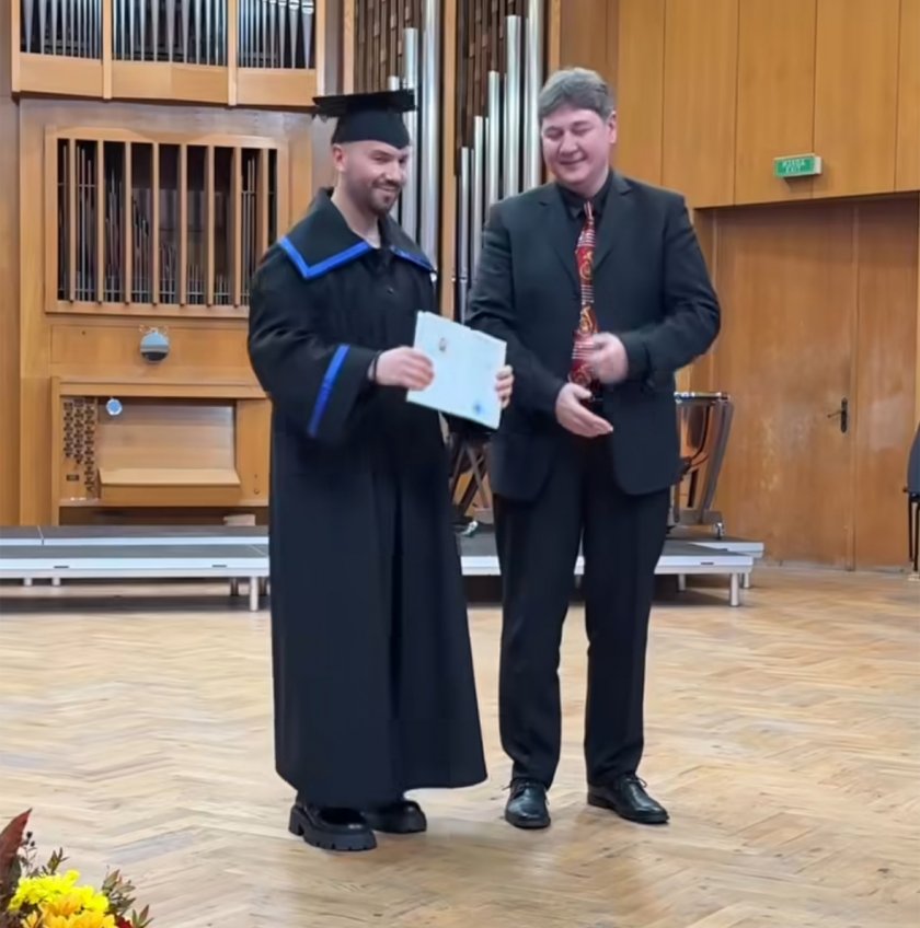 Изпълнителят Крум Сираков, познат и само като Крум, вече официално е магистър по флейта. В края на миналата седмица той и съкурсниците му от Националната музикална програма “Панчо Владигеров” получиха своите дипломи на специална церемония.