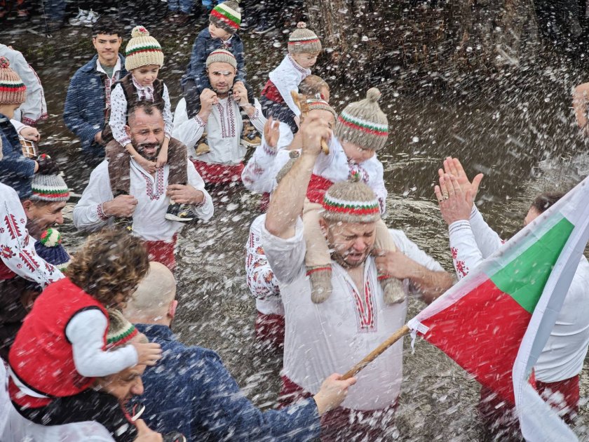И тази година в Калофер се изви т.нар. Ледено хоро. Десетки мъже влязоха в ледените води на река Тунджа. Те бяха съпроводени от музиканти с тъпани и гайди.