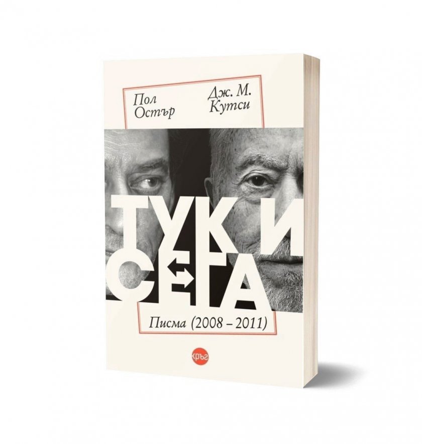 „Мисля си за приятелствата – пише Дж. М. Кутси до Пол Остър през юли 2008 г., – как възникват, защо продължават.“ Историята на тяхното се случва предимно от разстояние и може да бъде проследена в сборника „Тук и сега“, който събира писмата помежду им. Впечатляващо и със съдържанието, и с оформлението си, изданието със знака на „Кръг“ вече е налично в добрите книжарници – в превод на Иглика Василева, работила през годините по много от текстовете на двамата писатели, и с корица на Милена Вълнарова.