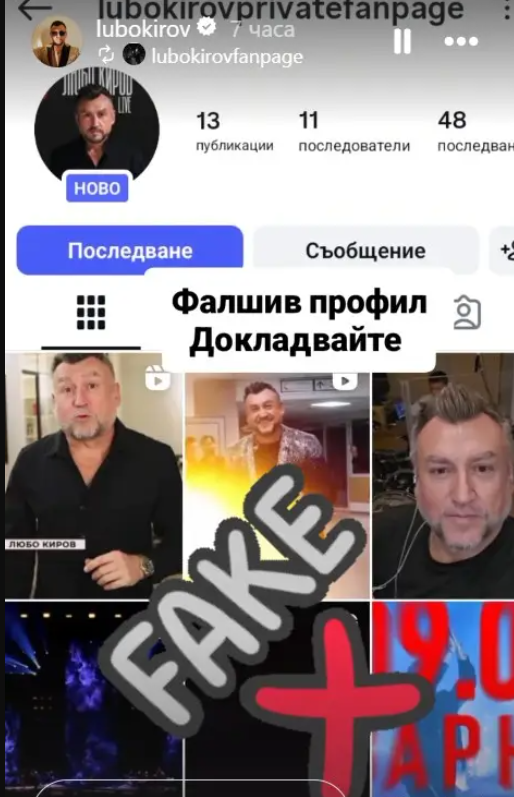 Популярният певец Любо Киров вдигна тревога и разтърси социалните мрежи, след като разкри нагъл фалшив профил в Инстаграм, който без свян се представя за него. Изпълнителят не остана безучастен и реагира светкавично, за да предпази феновете си от евентуални измами и злоупотреби.