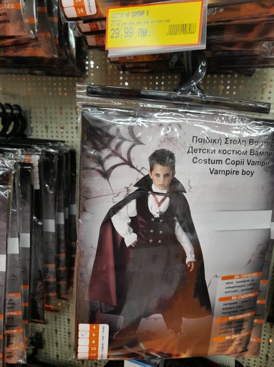 Цената им не е висока - около 15 лева. Още по-евтини са полите с пайети - 10 лв. Ако и възрастните искат да се позабавляват, могат да си купят вампирско наметало за 7,99.