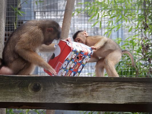 Маймунките в столичния зоопарк отвориха коледни подаръци