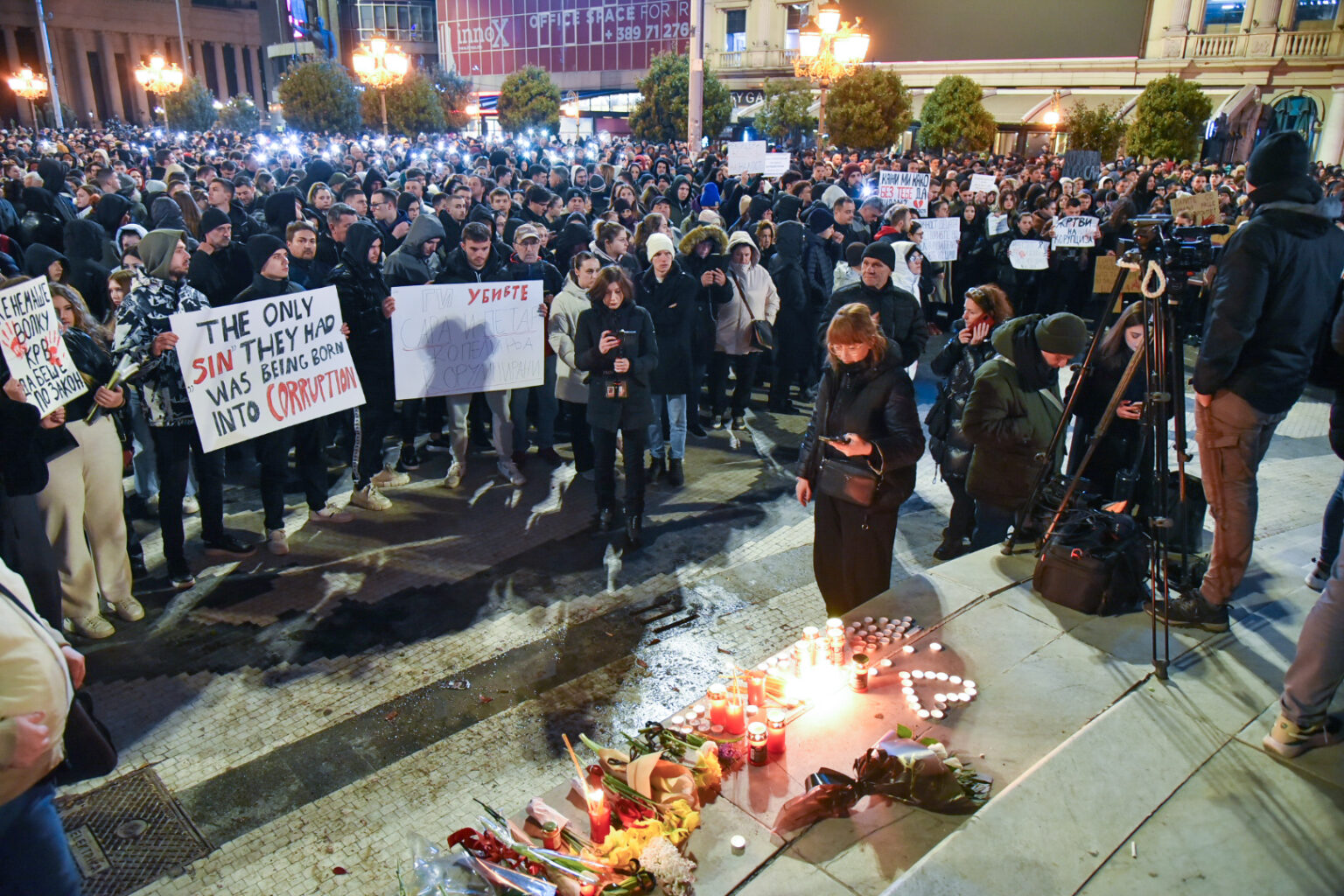 В Скопие, в кампуса на техническите факултети, в тишина и седемминутно мълчание студентите запалиха свещи и оставиха цветя.
