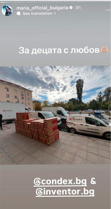 За това се похвали самата певица в социалните мрежи. На официалния профил във Фейсбук на фирмата пък посочиха, че "Дарението ще помогне центърът да бъде топъл през зимата и прохладен през лятото, осигурявайки комфорт на всички обитатели. С този жест фирма „Кондекс АД“ още веднъж показва своята ангажираност към социално значими каузи и подкрепата на хора в нужда", написаха служителите на възлюбения на Мария.
