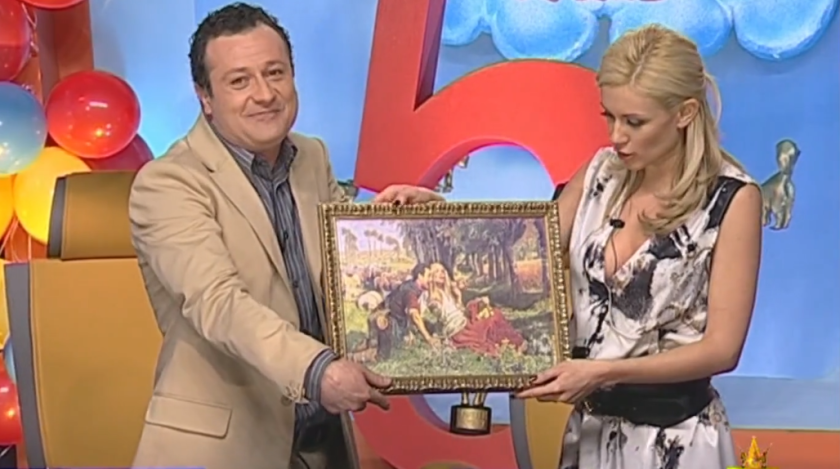„И за да разберете колко голяма част от сърцето ми са „Господари на ефира“, ето 18 години по-късно аз все още си пазя този гоблен. Ама той, човекът, се е постарал – бод след бод, очите си е избол. Ето това е подарък. А сега какво подарява? Пръстени!“, заяви блондинката, визирайки скорошния годеж на Рачков с Виктория Кузманова, която навремето беше адреналинка в „Господарите“. За късмет тя май не е танцувала в предаването по периода, в който Рачков и Мария водеха заедно, а в живота бяха двойка.