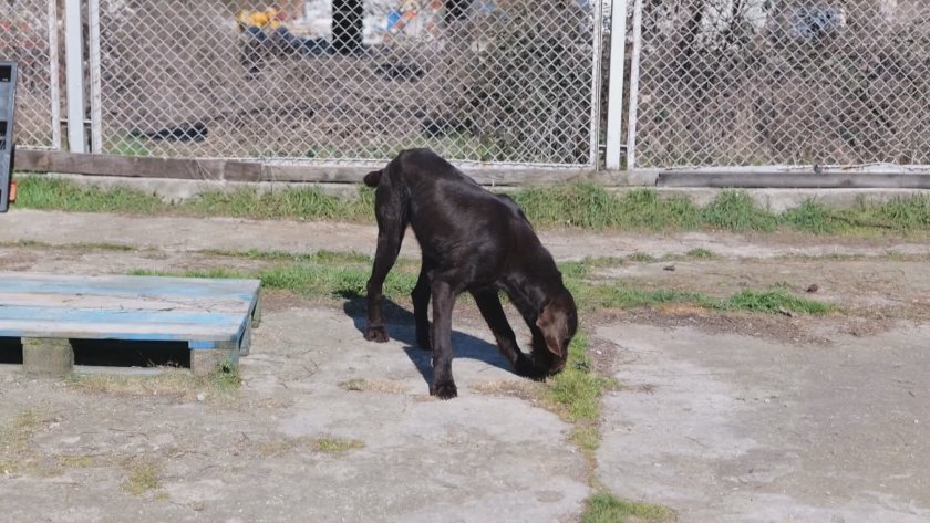 Този красив дратхаар е тук от около десетина дни. По врата му все още има следи от каишката, която е носил доскоро... Всички в приюта му казват Благо, защото е едно от най-благите и любвеобилни кучета тук.