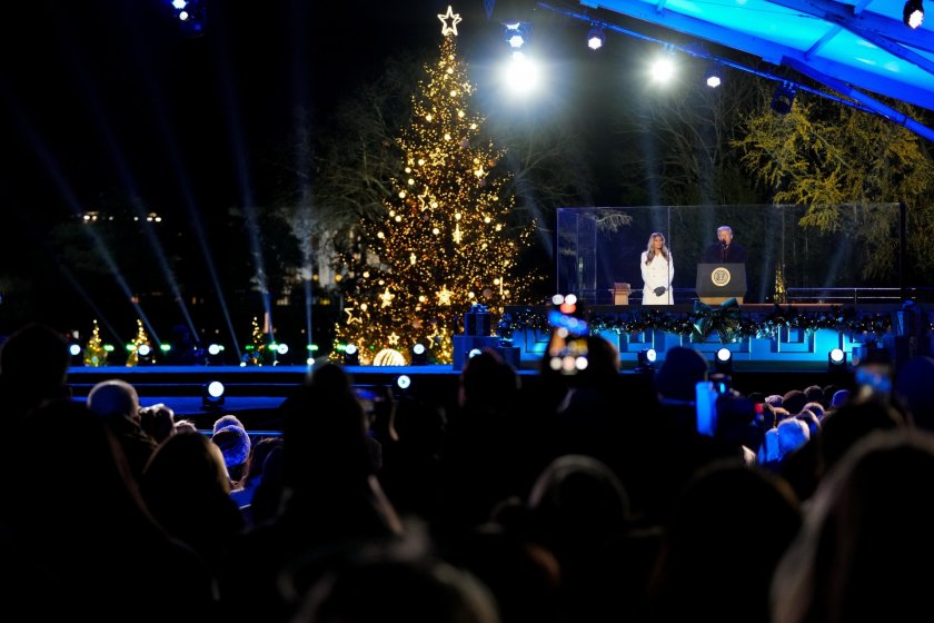 На ежегодното палене на светлините на дървото, южно от Белия дом, президентът Доналд Тръмп каза пред събралите се, че първата дама ще има честта да ги запали и сам преброи от пет до нула.