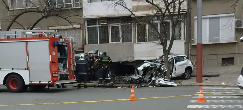 Колата е почти смазана отпред и от нея излиза дим, съобщава бТВ. На място е изпратена и пожарна, става ясно от кадри, заснети от хора в близките сгради.