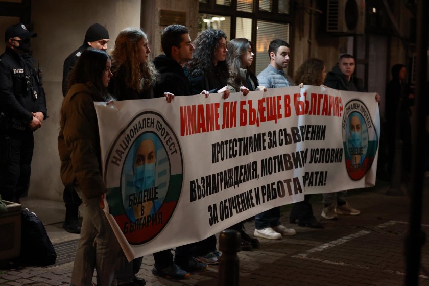 По-рано младите медици протестираха пред Министерството на здравеопазването в София с искане за достойни възнаграждения и условия на труд. Протестът е организиран от Инициативен комитет "Бъдеще в България".