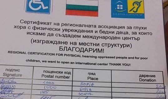 Проверката показала, че „Асоциацията на глухите за хора с увреждания, неми и бедни деца“, изписана в списъците, не съществува. От Съюза на глухите в България категорично отричат да имат подобна инициатива.