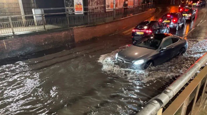 Повече от 50 населени места са издали предупреждение за опасност от наводнения. Бяха спрени влакове към и от градовете Макълсфийлд, Стокпорт и Екзитър. Не се очаква подновяването им до неделя по обед.