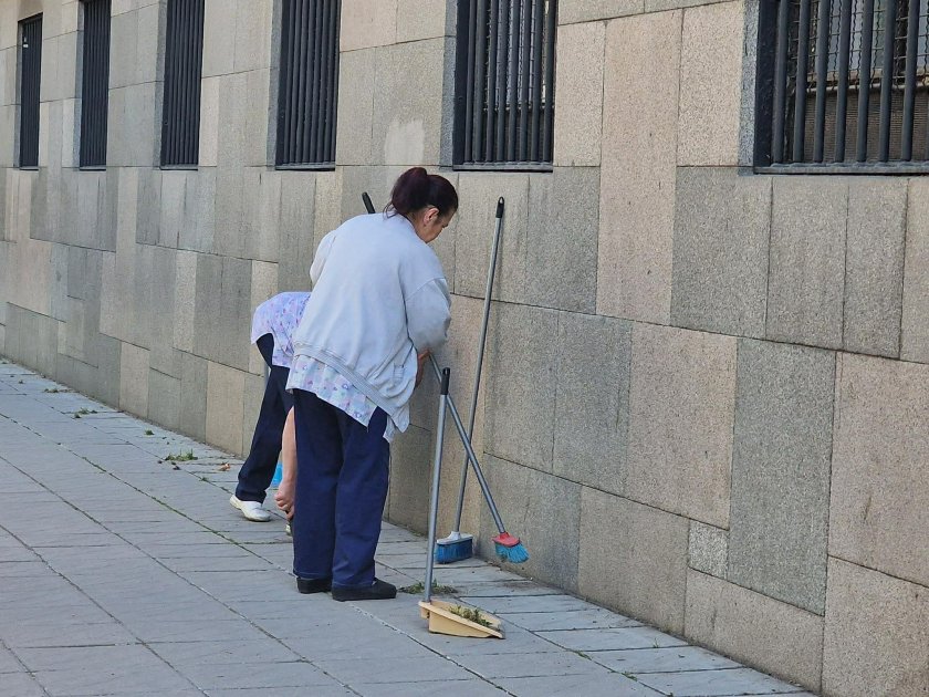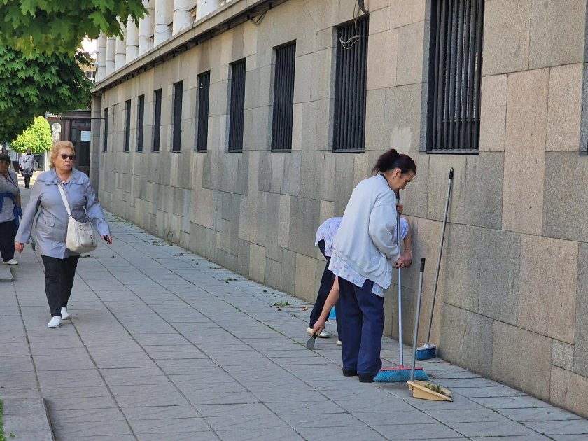 Хората цъкаха с език, след като минаваха и видяха нагледно как развъртяха метлите - чистят на пожар пред министерствата за новата власт.