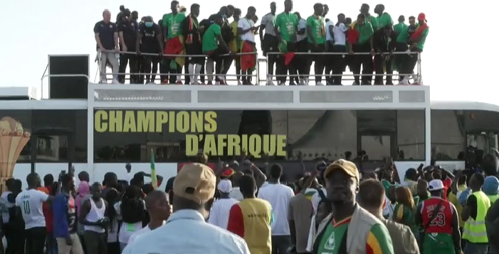 Националният отбор по футбол на Сенегал, който стана шампион на Африка след победата над Мароко във финала, пристигна късно снощи в Дакар.