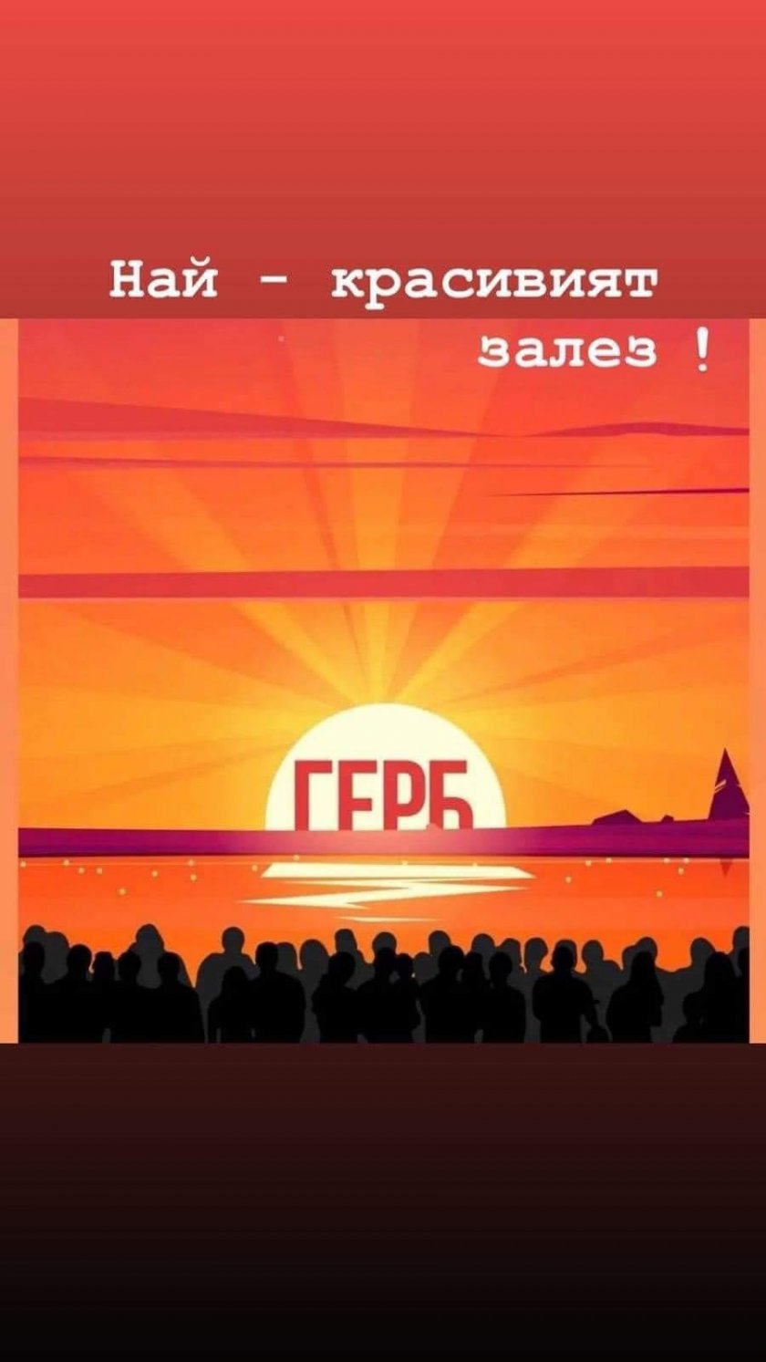 Колажът изобразява залязващо слънце с надпис "ГЕРБ", а над него е написано "Най-красивият залез!"