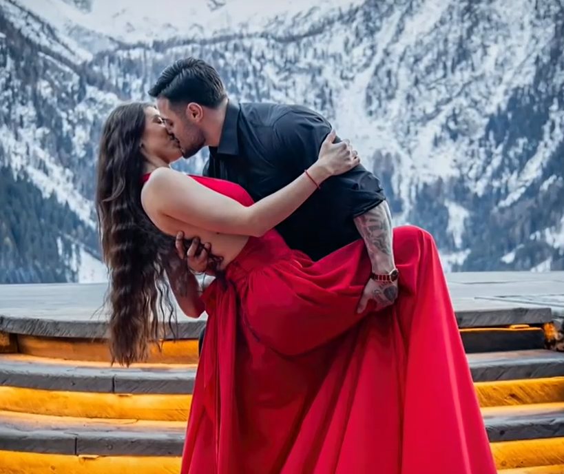 Снимките изглеждат внимателно режисирани и заснети на фона на внушителни планински пейзажи, което допълнително засилва усещането за лукс и романтика.