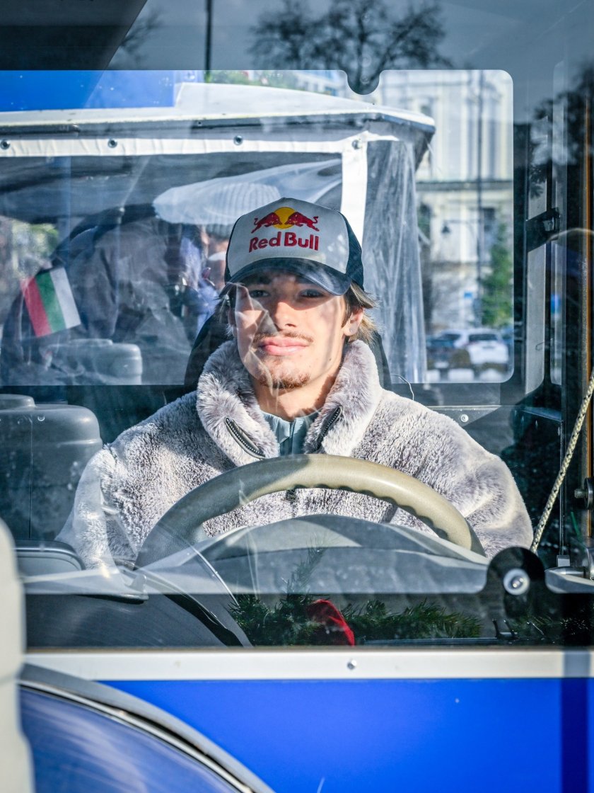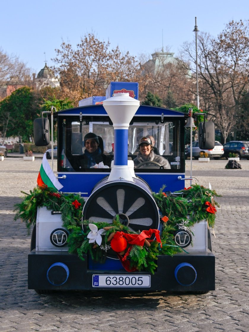Най-бързият български пилот Никола Цолов подкара Коледното влакче, което за първа година преминава през централните улици на столицата, разнасяйки празнично настроение и светлини.