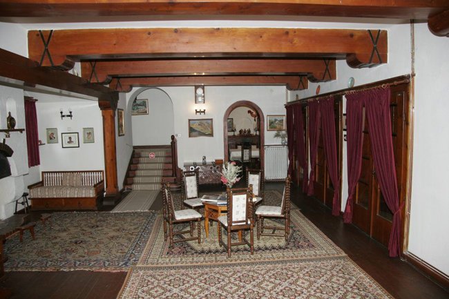 В сградата има голям салон с камина, трапезария и над 10 спални