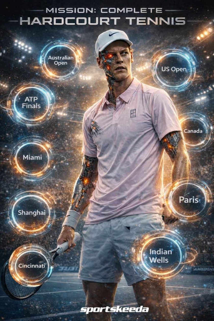 Синер вече има титли от всички ключови надпревари на твърда настилка – впечатляваща колекция, която включва Indian Wells Masters, Miami Open, Canadian Open, Cincinnati Masters, Shanghai Masters и Paris Masters, както и триумфи на най-голямата сцена – турнирите от Големия шлем и финалите на АТР.