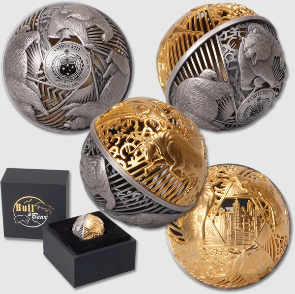 Сферичните монети са редки, висококачествени колекционерски предмети, често сечени като сребърни монети от една, 2 или 3 унции, но към днешна дата вече се продават и сребърни сферични монети, тежащи по 1 килограм!
