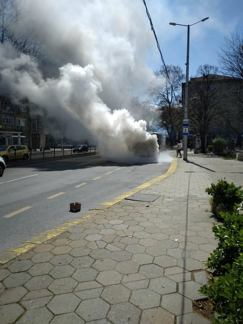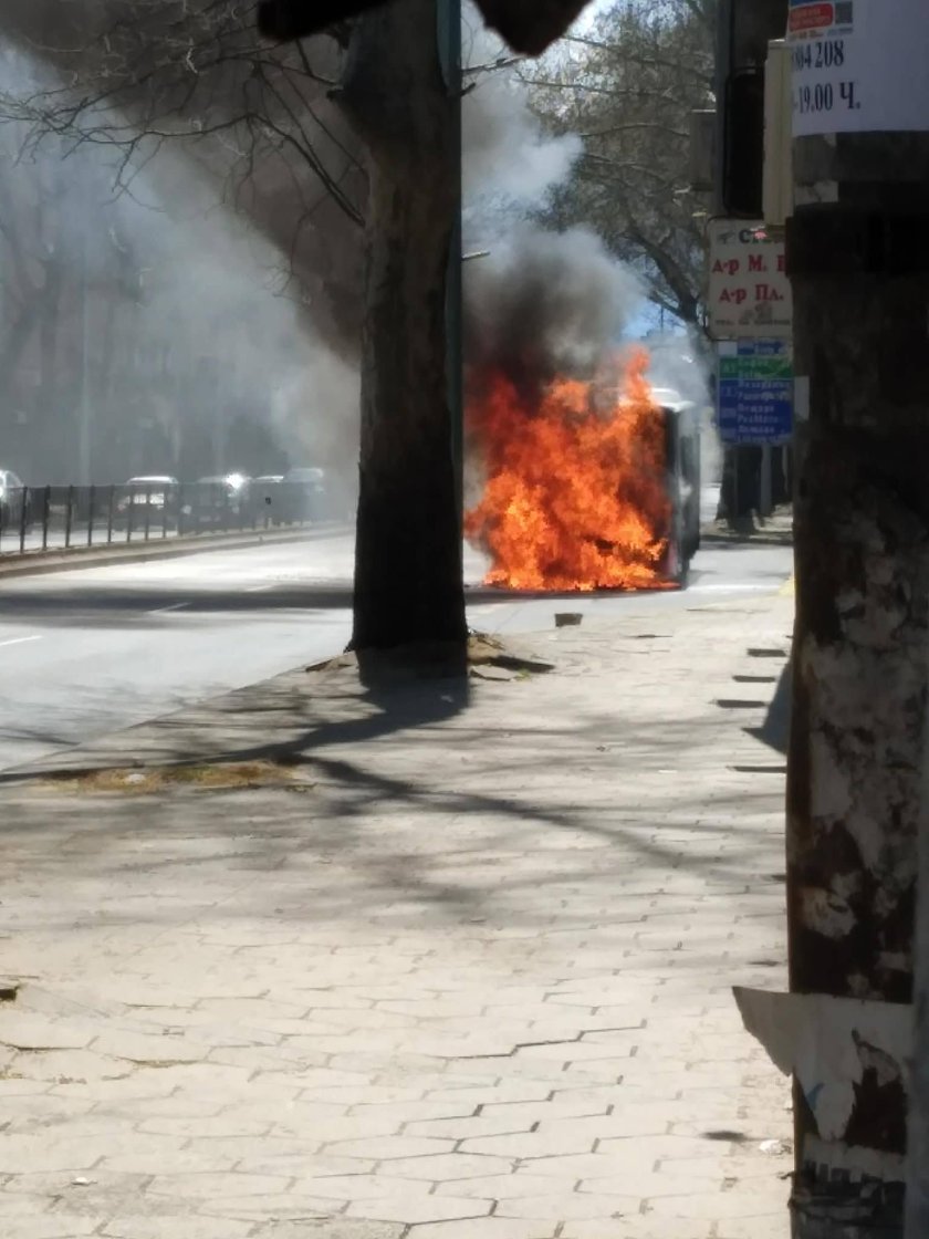 Огнен ад : Автобус пламна в движение в центъра на Пловдив (СНИМКИ)