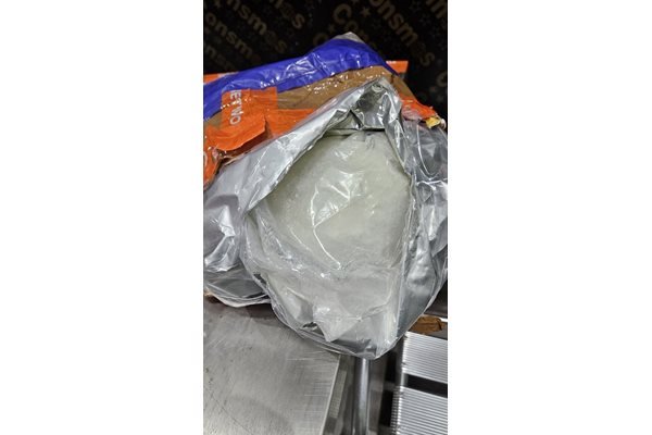 Пратката е била селектирана за проверка по митническа декларация, в която стоката е описана като „ксантанова гума" – заместител на глутен, използван при приготвяне на здравословни храни. Към нея са били приложени търговска фактура, сертификат и декларация от изпращача със същото описание.