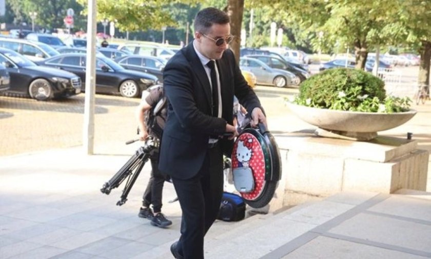 Явор Божанков се появи с едноколесен електрически ховърборд за първото заседание на 50-ия парламент
