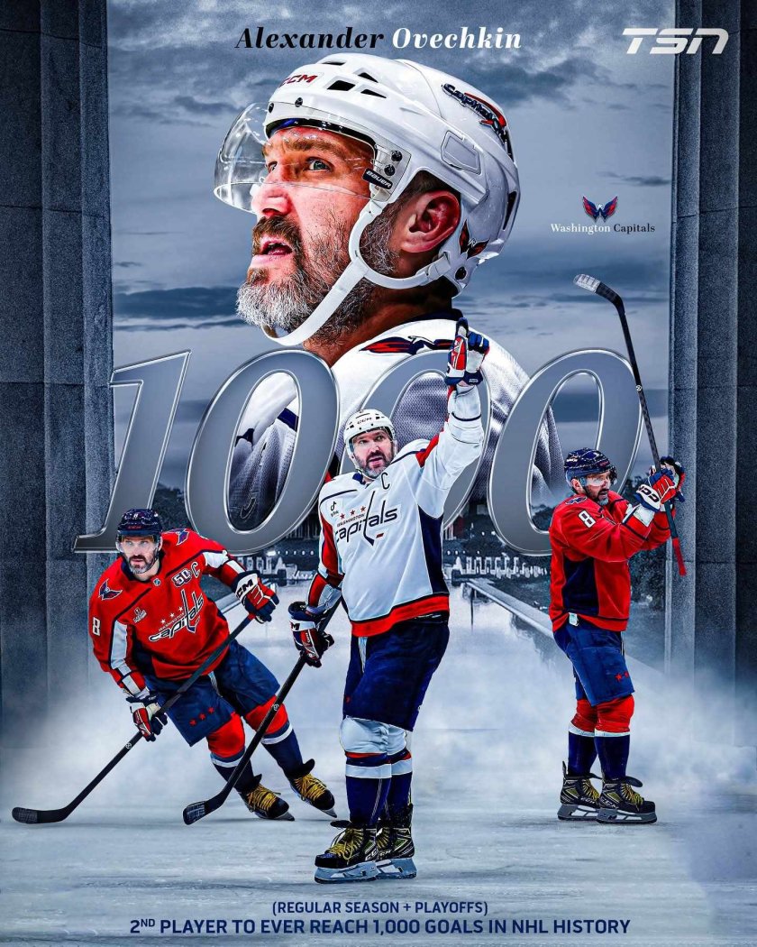 Алекс Овечкин реализира своята 1000-на шайба (редовен сезон + плейофи) в НХЛ и се превърна едва във втория играч в историята, достигнал тази граница.