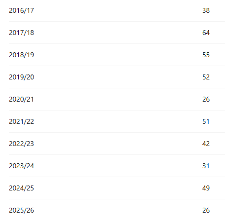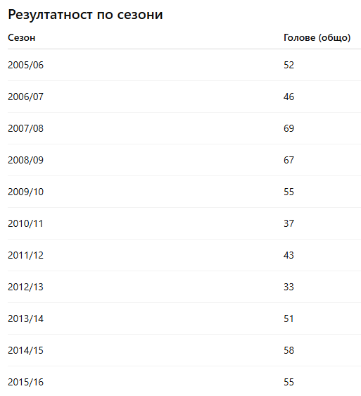 Най-силните му години остават 2007–2009, когато бележи 69 и 67 попадения. Дори в шампионския сезон 2017/18 (Купа "Стенли") той има "само" 64.