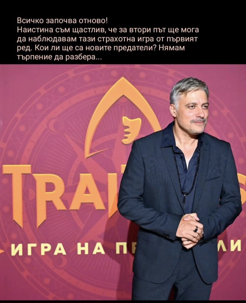 „Всичко започва отново! Наистина съм щастлив, че за втори път ще мога да наблюдавам тази страхотна игра от първия ред. Кои ли ще са новите предатели? Нямам търпение да разбера…“, написа той във фейсбук и инстаграм.