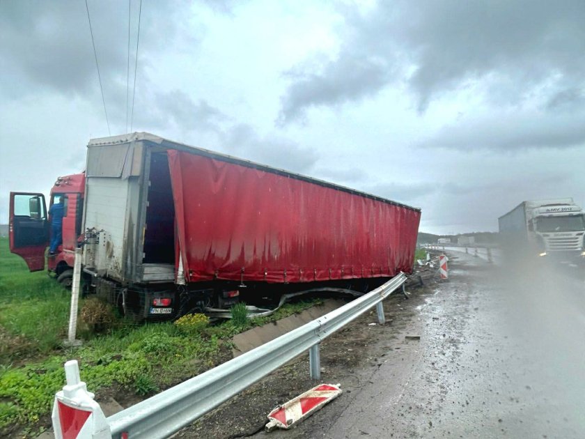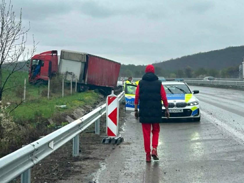 ТИР изскочи от пътното платно на магистрала "Хемус" и паркира в тревната плош, видя фоторепортер на Lupa.bg.