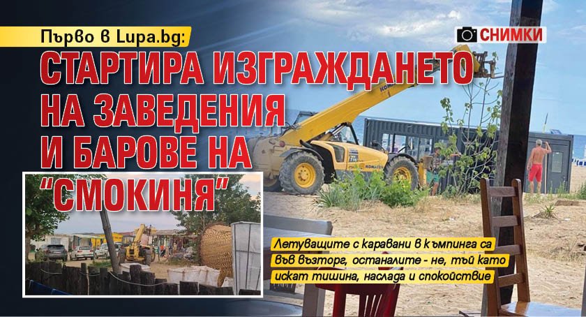 С бурни темпове, прекрасно време и температури около 30 градуса стартира изграждането на популярния плаж на къмпинг "Смокиня" край Созопол, видя репотрер на Lupa.bg.
