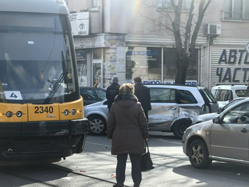 Първо в Lupa.bg: Трамвай помля кола на ул. "Козлодуй"