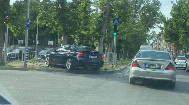 От удара немското возило е изхвърчало и е отнесло преградните пана до светофара. Патрулката пък е смачкана в предната лява част. И двете возила са с отворени въздушни възглавници.