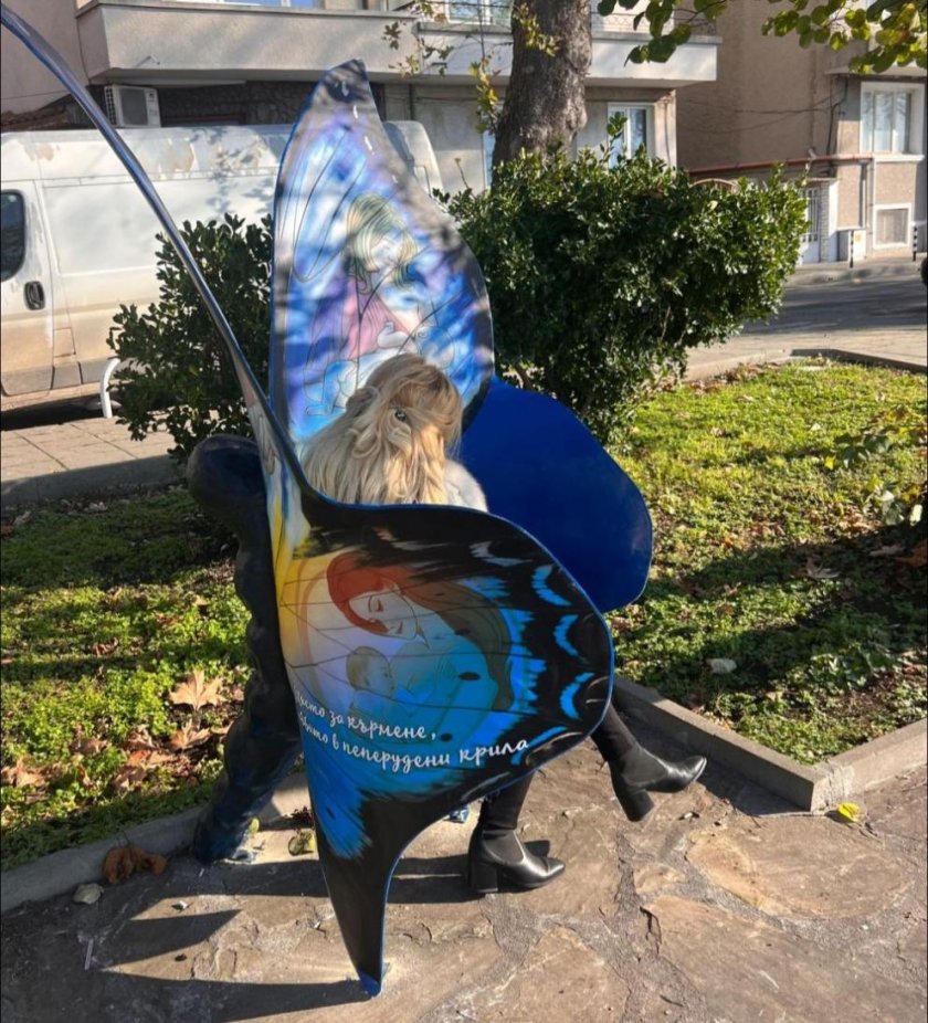 Поморие вече има красива пейка за кърмене, обвита с крила на пеперуда. Това е удобна пейка за кърмене, разположена на крайбрежна алея „П. К. Яворов“ в Поморие - в близост до пасажерското пристанище.