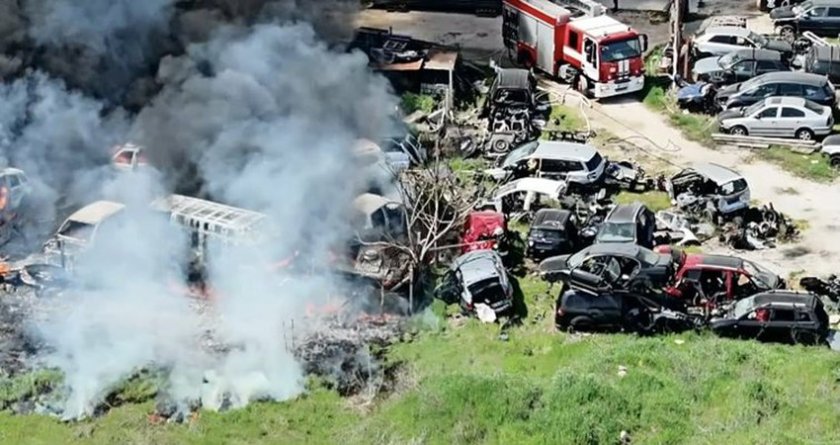 Гори автоморга за стари коли. Вижда се от всички страни как се стеле черният дим, разнасян от вятъра както към Пловдив, така и към близките населени места като Браниполе, Брестник и Белащица.