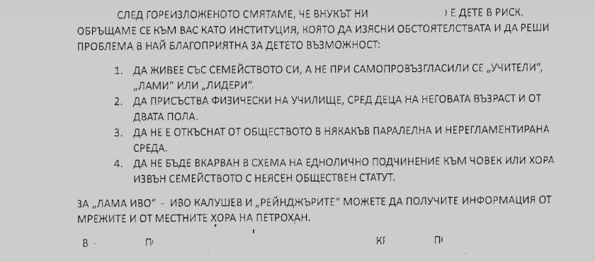 "Странно ни беше, че 7-годишно дете ще живее с непознати хора в планината, далече от семейството си, но смятахме, че няма да е за постоянно", пишат в сигнала си роднините.