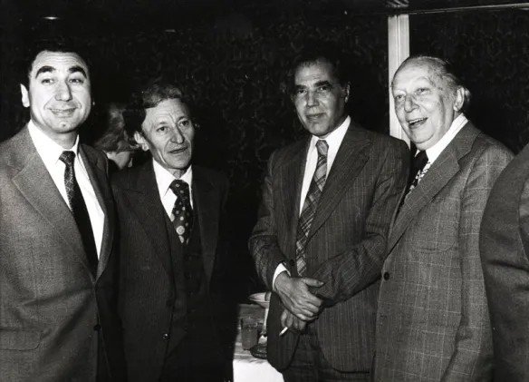 Министърът на културата заедно с писателите Йордан Радичков и Георги Джагаров и композитора Панчо Владигеров