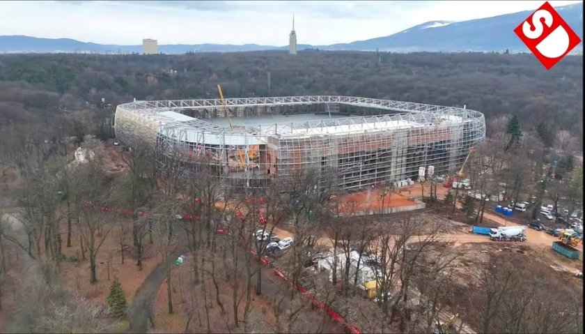 В същото време строителната дейност по козирката на новия стадион на ЦСКА вече е напълно завършена, което се вижда от последните кадри с дрон над Борисовата градина.