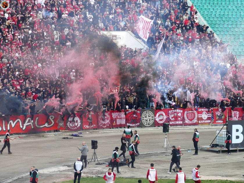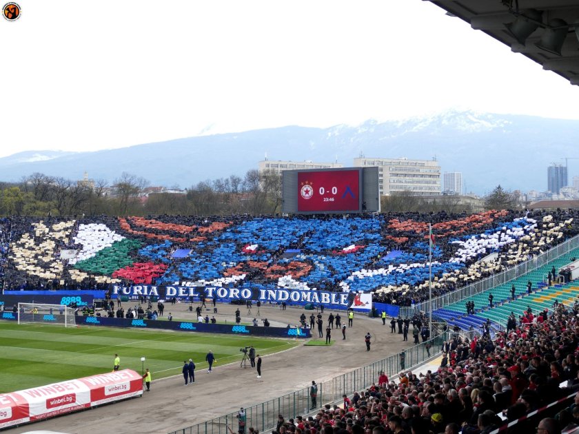 Освен на терена, на трибуните също беше доста горещо и съревнованието до голяма степен беше спечелено от публиката на ЦСКА, издигнала хореография в памет на един от своите идоли - Димитър Пенев, който почина в началото на годината.