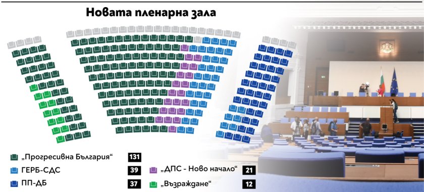 “Прогресивна България” сяда в центъра на пленарната зала, между ДПС и “Възраждане”. Това са се договорили формациите в 52-ото НС броени дни преди клетвата му.