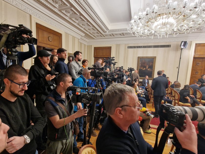 В Гербова зала на Преидентството са всички секретари и съветници на Румен Радев. Присъствата и огромен брой журналисти.