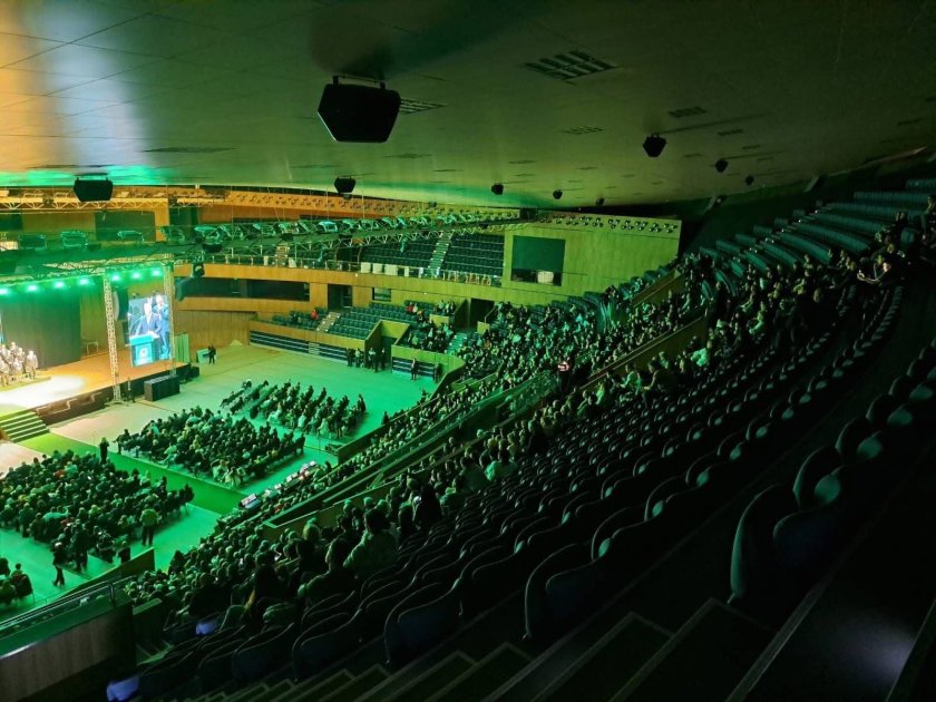Там той говори за правосъдие и срещу "сглобкаджиите" и Бойко Борисов заради шистовия газ в доста широката зала "Конгресна" на Двореца на културата и спорта. Капацитетът й от 5000 места обаче не можа да бъде напълнен и макар кадрите, разпространени от "Прогресивна България" да показват сериозно множество, по-късно бяха показани празните балкони на огромното съоръжение.